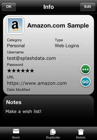 Security Organiser is another app for storing confidential data. This app is quite a bit cheaper than Splash ID, but still provides a number of good features. Features: