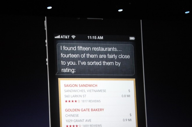 Siri will also be integrated into third-party services such as OpenTable, Rotten Tomatoes, Yelp, and sports data. For example, in the demo, Scott Forstall asked Siri sports trivia, such as a baseball player’s batting average and the score of a recent game, which Siri sourced. Yelp’s integration will help Siri find restaurants near your location and provide ratings and reviews for those restaurants. The integration with Rotten Tomatoes will delight movie lovers, as you can find films and showtimes, watch a trailer and research individual actors using only your voice.