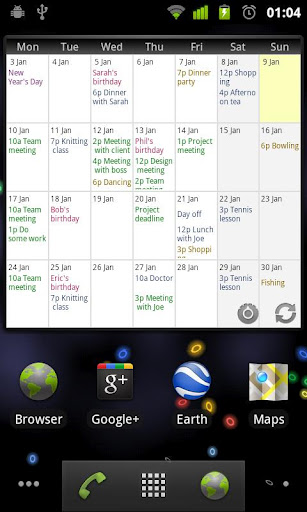 Instead of the standard feature of several different calendar views, the entire calendar is viewable from a zoomable, scrollable interface, so for example if you were in the month view, to see what you have coming up for the week, you can just simply zoom in using pinch-zoom or double tap. The app also works with Google calendar, however, the integration is not quite as comprehensive as CalenGoo.