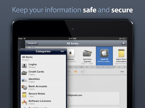1Password is a password manager that stores all of your website login details in addition to credit card information, secure notes, passports and bank accounts, behind a master password. All you have to do is remember the master password and 1Password will remember all of your other secure information for you.