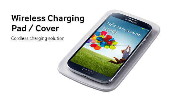 While the Galaxy S4 does not offer this functionality in-built, Samsung will offer a wireless charging pad and a special back battery cover as an optional accessory to bring wireless charging to the S4.