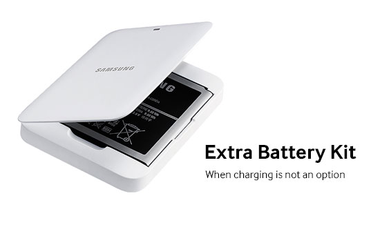 The extra battery kit from Samsung comes with a battery charger, to ensure that your spare battery is fully charged and ready to go when you need it. It also allows you to charge the phone and the spare battery all at once, adding another layer of convenience.
