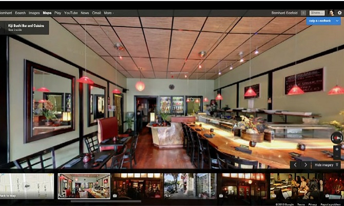 While available with previous versions of Google Maps, the indoor version of Street View is fantastic. It allows you to virtually walk around certain businesses and public places, and with user submitted Android Photo Spheres of places all over the world now active, you now have access to pannable, 360-degree views of interiors.