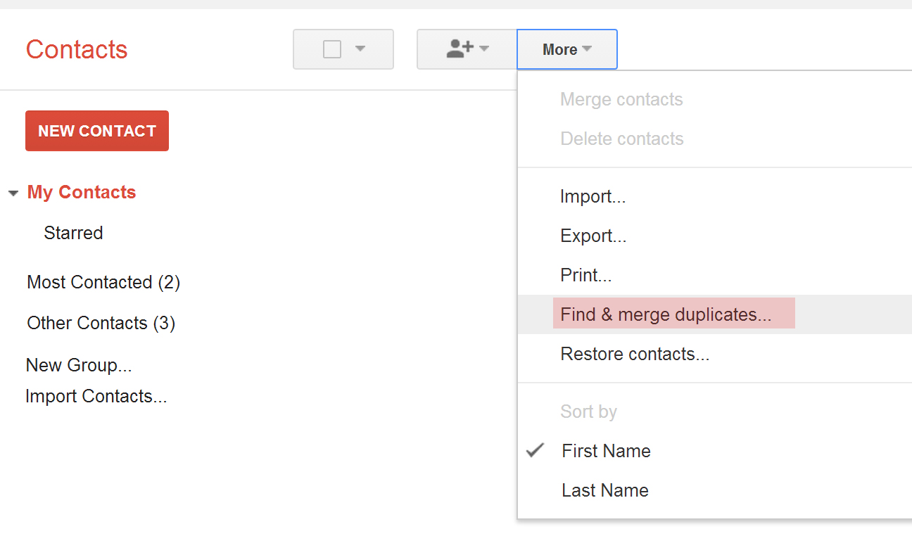 2. Click the More drop down menu and select Find and Merge Duplicates.